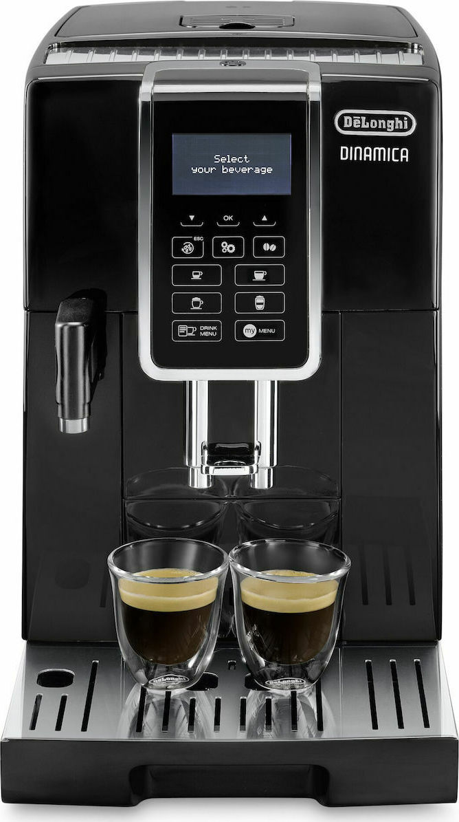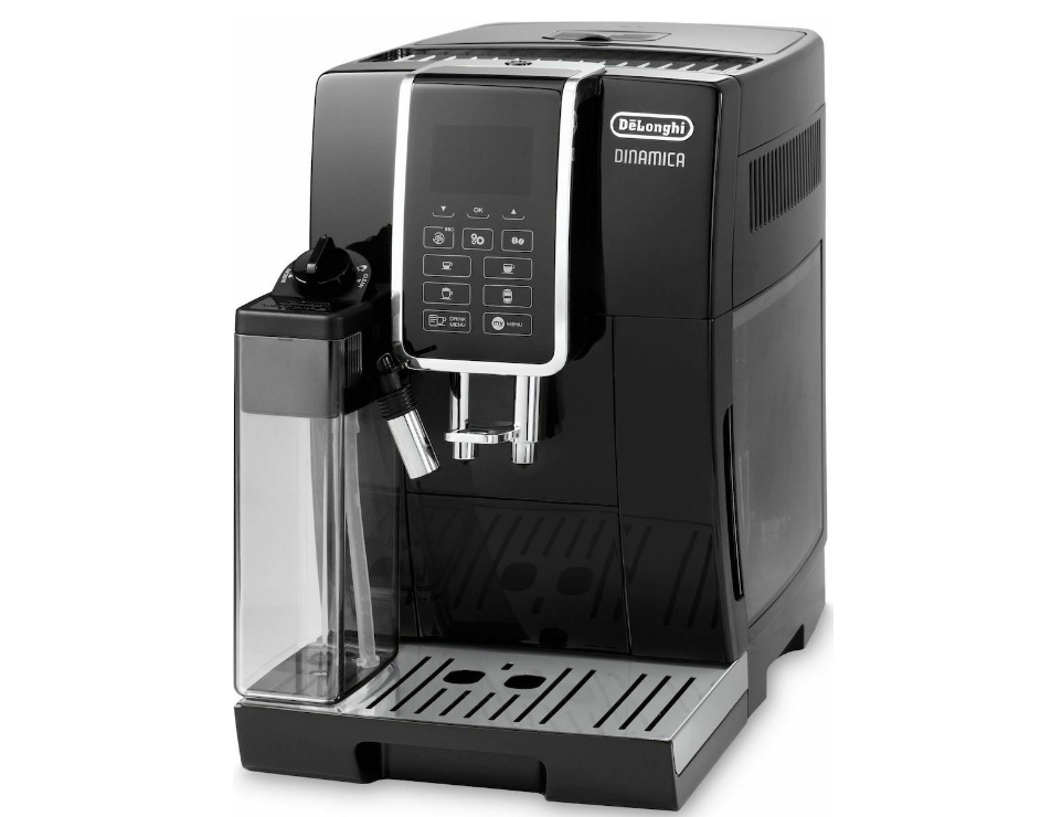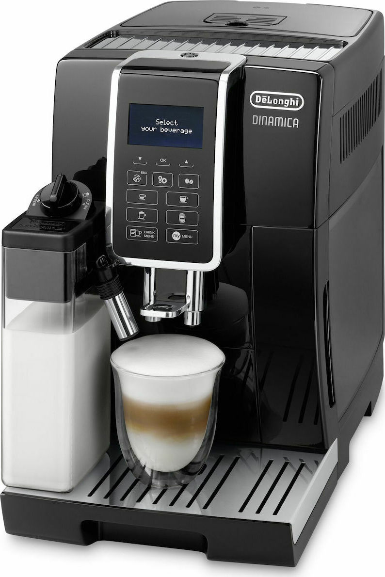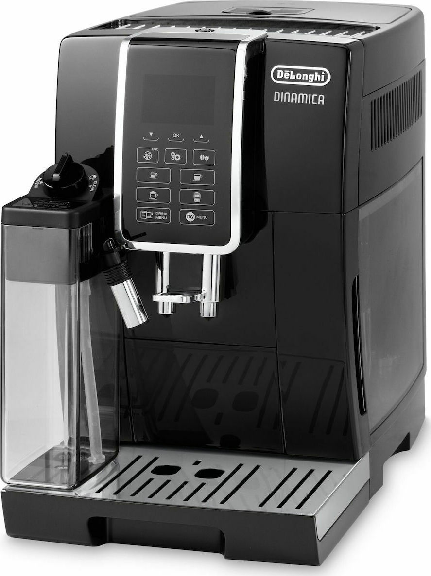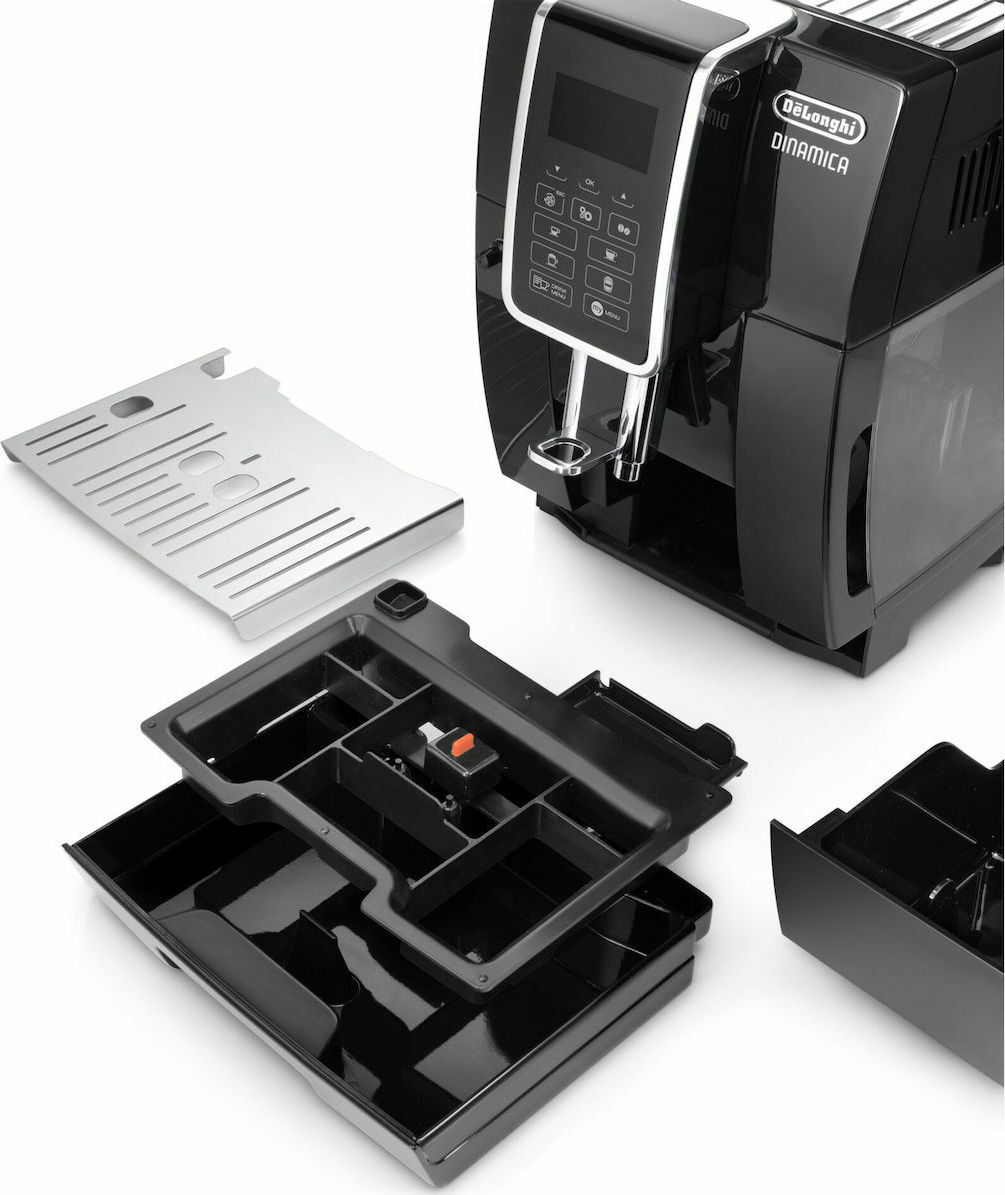 De’Longhi Dinamica Αυτόματη Μηχανή Espresso 1450W Πίεσης 15bar για Cappuccino με Μύλο Άλεσης Μαύρη