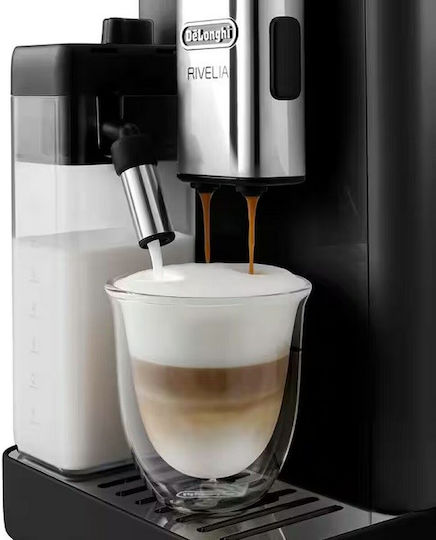 De’Longhi Rivelia Αυτόματη Μηχανή Espresso 1450W Πίεσης 19bar για Cappuccino με Μύλο Άλεσης Onyx Black