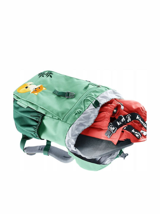Deuter Waldfuchs 10 παιδικό σακίδιο πεζοπορίας σε χρώμα spearmint/seagreen, κατάλληλο για καθημερινή χρήση και πεζοπορίες με γονείς. Το μοντέλο διαθέτει ανακλινόμενο κάθισμα, βάση ανθεκτική στην υγρασία και περιλαμβάνει κάλυμμα βροχής. Κατασκευασμένο από ανακυκλωμένο 600D πολυεστέρα, προσφέρει άνεση με το σύστημα μεταφοράς Deuter Contact, το οποίο περιλαμβάνει πίσω πάνελ από αφρώδες υλικό καλυμμένο με δικτυωτό ύφασμα. Διαθέτει επίσης ρυθμιζόμενο στήριγμα στήθους. Οι ιμάντες ώμου είναι εργονομικά σχεδιασμένοι και μαλακά επενδεδυμένοι.