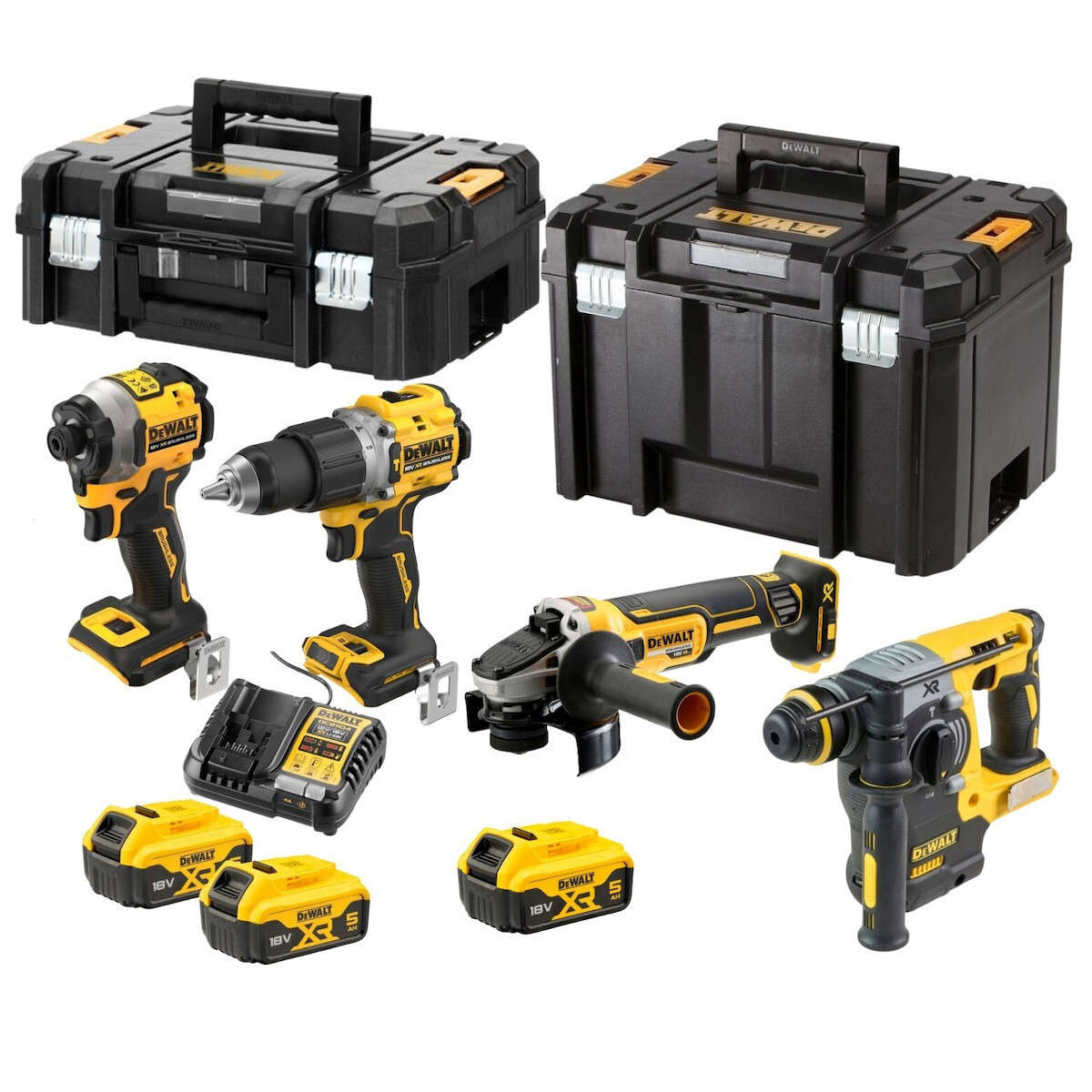 Dewalt DCK429P3T Σετ Γωνιακός Τροχός, Δραπανοκατσάβιδο, Κατσαβίδι & Σκαπτικό 18V με 3 Μπαταρίες 5Ah και Θήκη