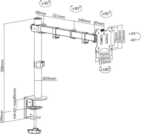 Με την universal βάση οθόνης από το DIGITUS, μπορείτε να συνδέσετε άνετα μια οθόνη με διαστάσεις μεταξύ 15″ – 32″ στο γραφείο σας χρησιμοποιώντας μια βάση σφιγκτήρα. Η λειτουργία γρήγορης απελευθέρωσης σας διευκολύνει επίσης να εγκαταστήσετε την οθόνη. Το στήριγμα VESA απλώς εισάγεται στην αντίστοιχη βάση και στερεώνεται με μια βίδα.