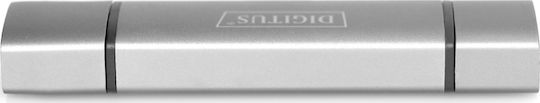 Digitus Card Reader USB 3.0 Type-C για SD/microSD Γκρι (DA-70886)
