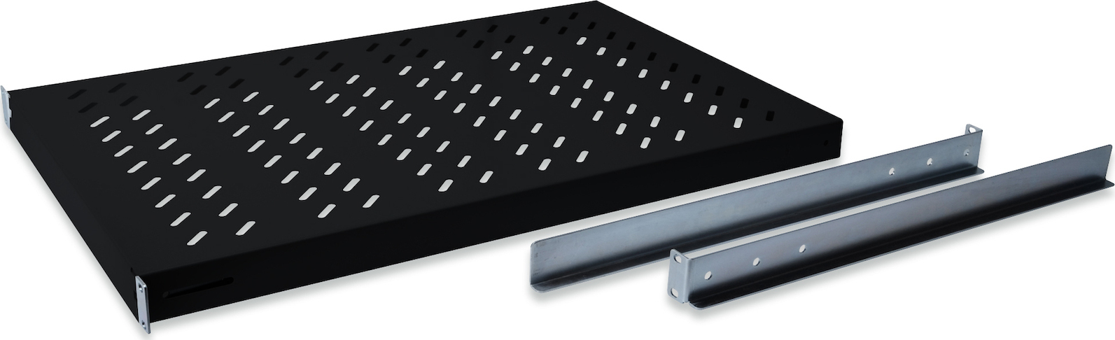 Οι ράφια είναι εύκολα εγκαταστάσιμα στις τέσσερις γωνίες τοποθέτησης 19″ των καμπινών 19″. Χάρη στο ανθεκτικό, διάτρητο φύλλο χάλυβα με υψηλές δυνατότητες φόρτωσης, αποτελούν την ιδανική επιφάνεια για τα εξαρτήματά σας.