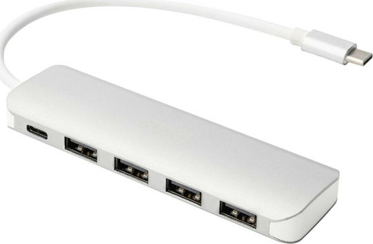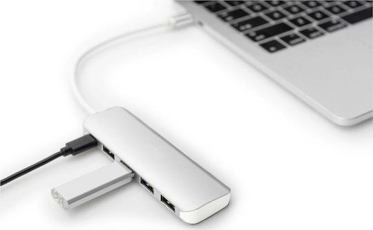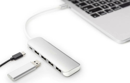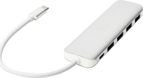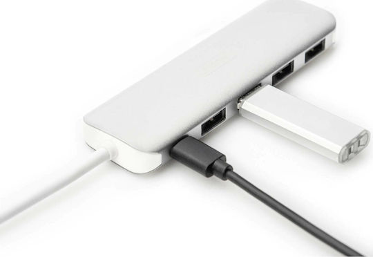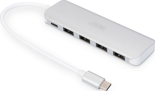 Digitus USB 3.0 Hub 5 Θυρών με σύνδεση USB-C & Θύρα Φόρτισης Ασημί (DA-70242-1)