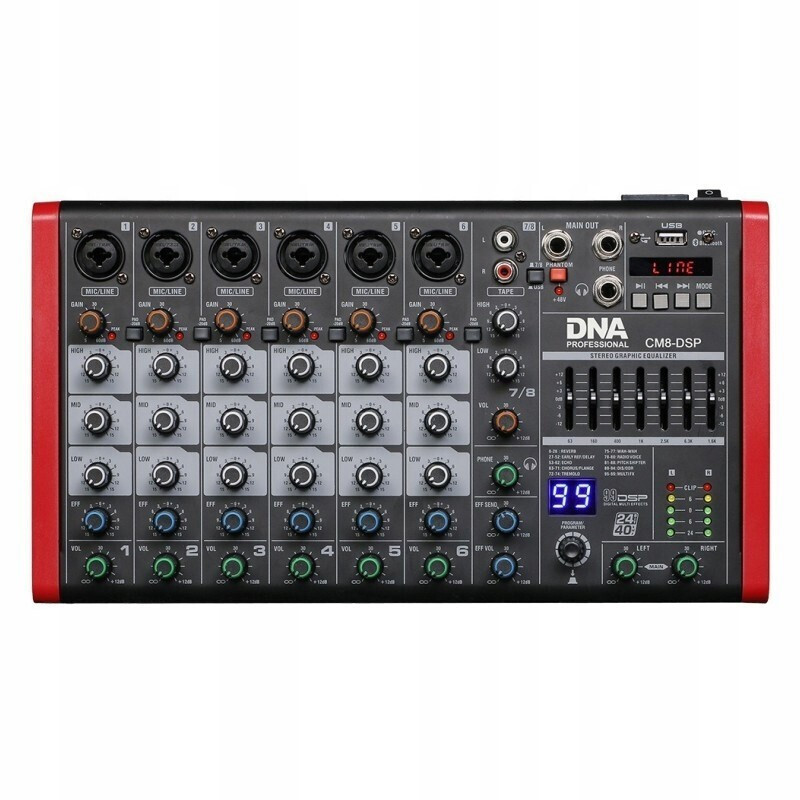 Η κονσόλα της ανώνυμης εταιρίας DNA CM8-DSP είναι ιδανική για επαγγελματίες και ερασιτέχνες που αναζητούν μια αξιόπιστη λύση για τις μουσικές τους ανάγκες. Είναι ένας ψηφιακός μίκτης που προσφέρει 8 κανάλια, επιτρέποντας την ταυτόχρονη διαχείριση πολλών πηγών ήχου.