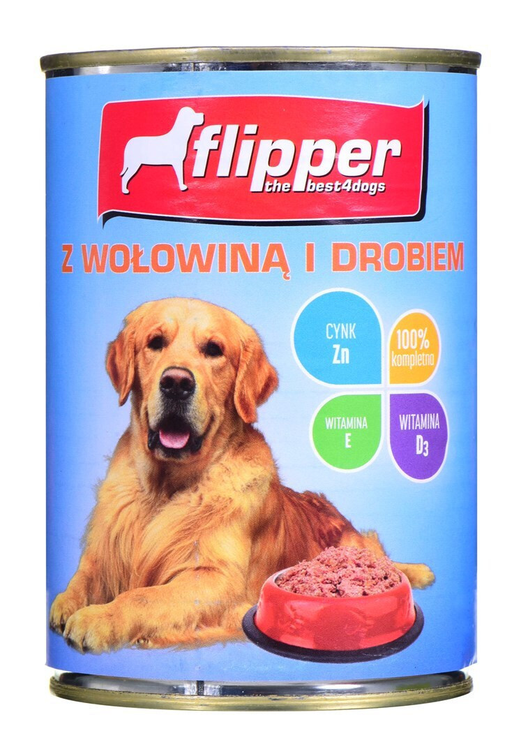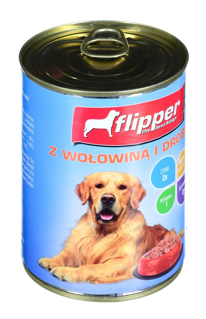 Η Υγρή Τροφή Σκύλων Dolina Noteci Flipper προσφέρει μια θρεπτική επιλογή για τους ενήλικους σκύλους σας, συνδυάζοντας την πλούσια γεύση βοδινού και κοτόπουλου σε μορφή κονσέρβας. Αυτή η τροφή είναι ιδανική για όλες τις φυλές και καλύπτει τις καθημερινές διατροφικές ανάγκες των τετράποδων φίλων σας.
