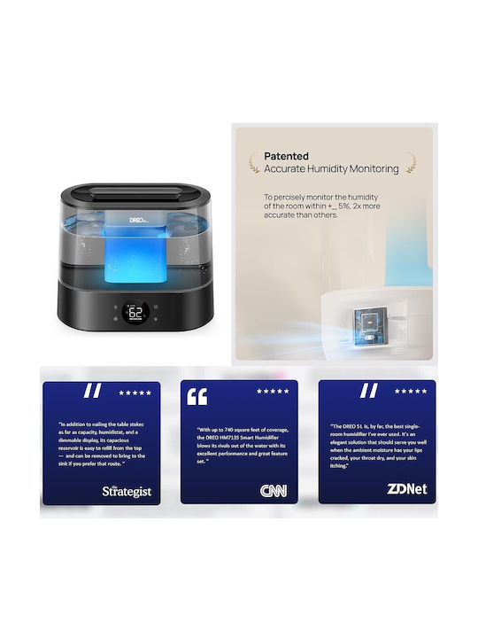 Dreo Led Συσκευή Αρωματοθεραπείας με Χρονοδιακόπτη Μαύρη 300ml