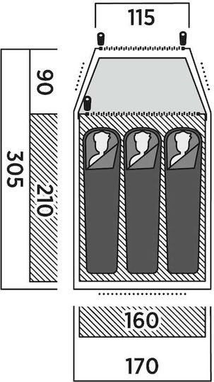 • Διαστάσεις σκηνής: 305 x 170 x 120 cm (Μ x Π x Υ)