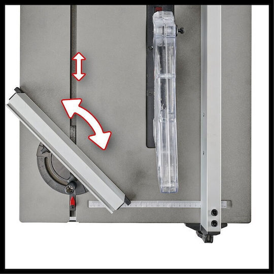 Η λεπίδα μπορεί να έχει κλίση έως 45°, η οποία σε συνδυασμό με το στοπ γωνίας (+/- 45°) καθιστά δυνατές τις ακριβείς κοπές σε φαλτσογωνιά. Για μέγιστη ασφάλεια κατά το πριόνισμα, μπορεί επίσης να ρυθμιστεί η κατακόρυφη θέση της λεπίδας του πριονιού. Το επιτραπέζιο πριόνι είναι εξοπλισμένο με ένα σχισμοειδή φράκτη με σφιγκτήρες και στις δύο πλευρές.