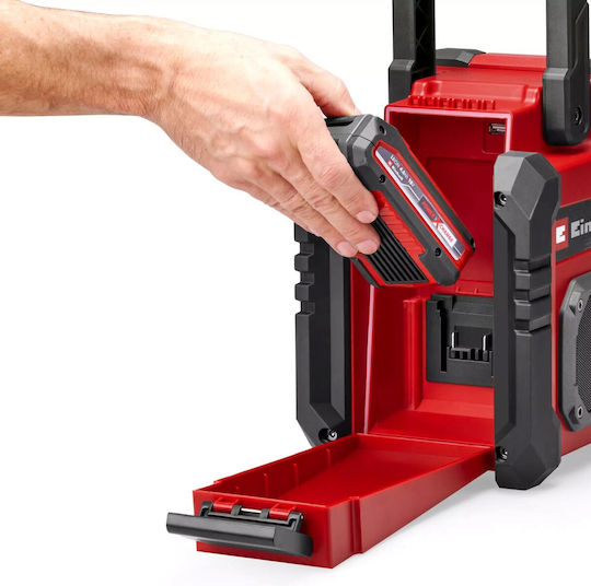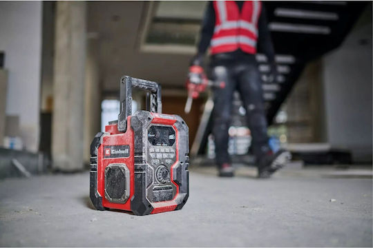 Το ραδιόφωνο μπαταρίας TE-CR 18 Li DAB+/FM/BT – Solo της Einhell είναι απαραίτητο στοιχείο για να έχετε καλή διάθεση στο εργαστήριο ή τη δουλειά σας.Αυτό το ανθεκτικό ραδιόφωνο είναι μέλος της οικογένειας Power X-Change, όπου μια μπαταρία και ένας φορτιστής μπορεί να συνδυαστεί με ευελιξία με όλες τις συσκευές του συστήματος. Εναλλακτικά, το ραδιόφωνο μπορεί να τροφοδοτηθεί μέσω του καλωδίου ρεύματος μήκους 1,8 μέτρων που περιλαμβάνεται. Το ραδιόφωνο μπαταρίας λαμβάνει ψηφιακούς σταθμούς DAB+ και FM και μπορείτε να αποθηκεύσετε έως και 30 σταθμούς. Η λειτουργία αυτόματης αναζήτησης διευκολύνει την εύρεση σταθμών, ενώ η λειτουργία RDS εμφανίζει πληροφορίες όπως τίτλο τραγουδιού, όνομα σταθμού και πληροφορίες κίνησης απευθείας σε μια ευκρινή έγχρωμη οθόνη TFT. Εκτός από τη λήψη ραδιοφωνικών εκπομπών, η συσκευή μπορεί επίσης να αναπαράγει μουσική μέσω Bluetooth, USB και AUX. Επιπλέον, οι εξωτερικές συσκευές όπως ένα smartphone μπορούν να φορτιστούν εύκολα μέσω της θύρας USB-Out. Ο ενσωματωμένος ισοσταθμιστής για τη ρύθμιση των μπάσων και των πρίμων μπορεί να δημιουργήσει εξατομικευμένη εμπειρία ήχου. Το στιβαρό περίβλημα με μαλακό πλαίσιο λαβής και το προστατευτικό μπαταρίας είναι πιστοποιημένα σύμφωνα με την κατηγορία προστασίας IP65 και επομένως είναι ανθεκτικό στη σκόνη και στις πιτσιλιές. Ιδανικό για απαιτητικά περιβάλλοντα, όπως ένα εργοτάξιο ή/και εξωτερικούς χώρους. Δύο μεγάλα ηχεία παρέχουν ισχυρό στερεοφωνικό ήχο και η αναδιπλούμενη αντικραδασμική κεραία εγγυάται βέλτιστη λήψη. Διαθέτει ξυπνητήρι με δύο ρυθμιζόμενους χρόνους αφύπνισης, λειτουργία ύπνου για αυτόματη απενεργοποίηση και άνετη, αναδιπλούμενη λαβή μεταφοράς. Το ραδιόφωνο μπαταρίας TE-CR 18 Li DAB+/FM/BT – Solo της Einhell δεν περιλαμβάνει μπαταρία ή φορτιστή (διατίθενται ξεχωριστά).