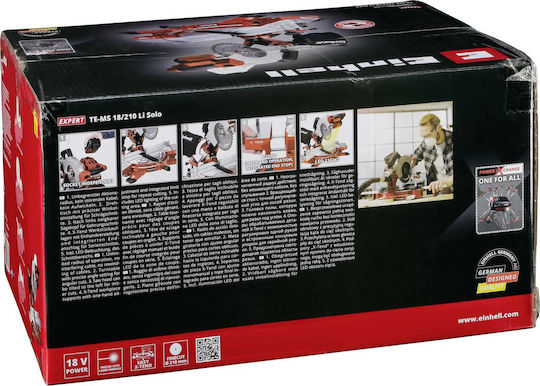 Einhell TE-MS 18/210 Solo Φαλτσοπρίονο Μπαταρίας με Ισχύ 1400W, Οδηγό Laser, Δίσκο Κοπής Διαμέτρου 210mm & Ταχύτητα Κοπής 3000rpm (χωρίς Μπαταρία και Φορτιστή)