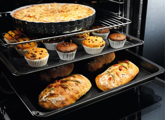 Απολαύστε ομοιόμορφο μαγείρεμα με το Μαγείρεμα σε Πολλά Επίπεδα. Η πρόσθετη κυκλική αντίσταση σάς βοηθά να μαγειρεύετε ομοιόμορφα και στα τρία επίπεδα. Τέλειο για τη δημιουργία των καλύτερων μπισκότων και των πιο εντυπωσιακών πιτών.