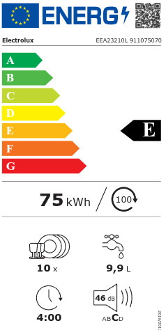 Κατανάλωση ενέργειας ανά 100 κύκλους: 75 kWh