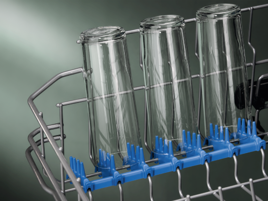 Για να ελαχιστοποιηθεί ο κίνδυνος να υποστούν ζημιά ή να σπάσουν τα εύθραυστα ποτήρια σας κατά την πλύση στο πλυντήριο πιάτων, οι ελαστικές υποδοχές SoftSpike τα διατηρούν με ασφάλεια σε όρθια θέση.