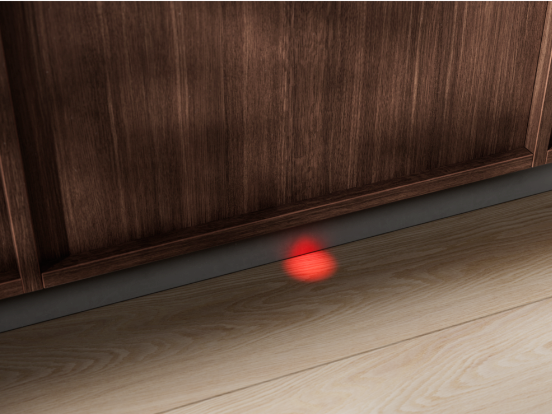 Το σύστημα ειδοποιήσεων Δέσμης Φωτός στο Δάπεδο διατηρεί μια ησυχία στην κουζίνα σας. Αντί για ένα δυνατό μπιπ που μπορεί να χαθεί μέσα στους άλλους περιβαλλοντικούς θορύβους, το πλυντήριο πιάτων μας σας ενημερώνει ξεκάθαρα για την κατάστασή του προβάλλοντας μια κουκκίδα στο δάπεδο. Κόκκινη όταν βρίσκεται σε λειτουργία, πράσινη όταν έχει ολοκληρωθεί.