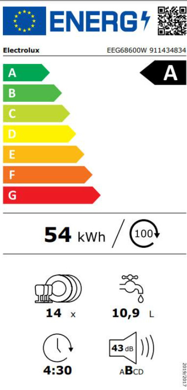 - Κατανάλωση ενέργειας ανά 100 κύκλους: 54 kWh
