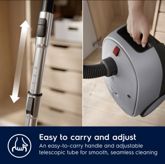 - Χειροκίνητη ρύθμιση ισχύος: Η ισχύς αναρρόφησης ρυθμίζεται χειροκίνητα μέσω του ελέγχου ρύθμισης ισχύος στην ηλεκτρική σκούπα.