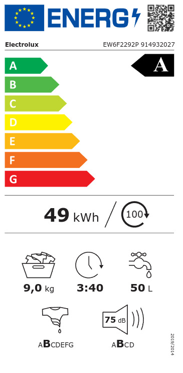 - Πrogramma πλυσίματος: Μαλλί, Ευαίσθητα, Βαμβάκι, Παπλώματα, Υγιεινή, Συνθετικά, Εξωτερικά, Γρήγορα, Τζιν/βαμβάκι, Στύψιμο/απόστραγγιση, Eco 40-60°C, Ξέβγαλμα