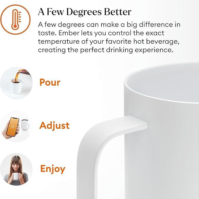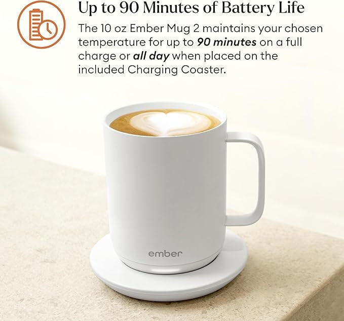 Η Ember Mug είναι μια έξυπνη κούπα σχεδιασμένη για το σπίτι ή το γραφείο, που επιτρέπει τη ρύθμιση της ακριβούς θερμοκρασίας για τα ροφήματά σας, διατηρώντας τα στη σωστή θερμοκρασία για έως 1.5 ώρες εκτός βάσης ή όλη την ημέρα όταν βρίσκεται πάνω στη βάση φόρτισης.