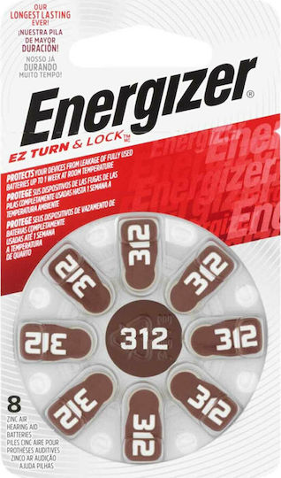 Energizer Μπαταρίες Ακουστικών Βαρηκοΐας 312 1.4V 8τμχ