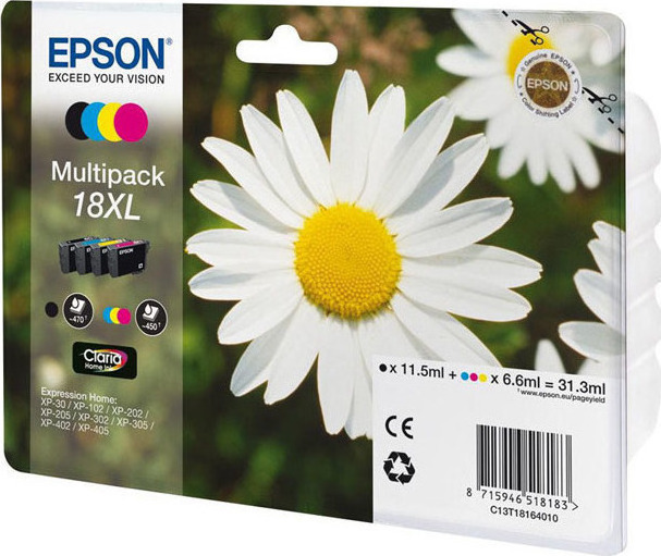 Epson 18XL Γνήσιο Πακέτο 4 Μελανιών Εκτυπωτή InkJet Κίτρινο / Κυανό / Ματζέντα / Μαύρο (C13T18164010 C13T18164012)