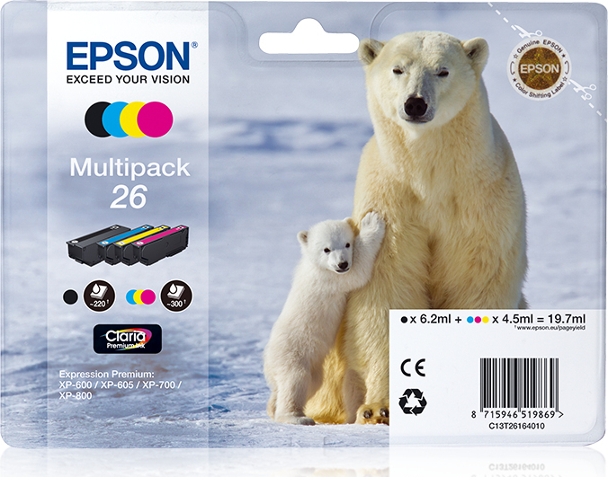 Epson 26 Γνήσιο Πακέτο 4 Μελανιών Εκτυπωτή InkJet Κίτρινο / Κυανό / Ματζέντα / Μαύρο (C13T26164010)
