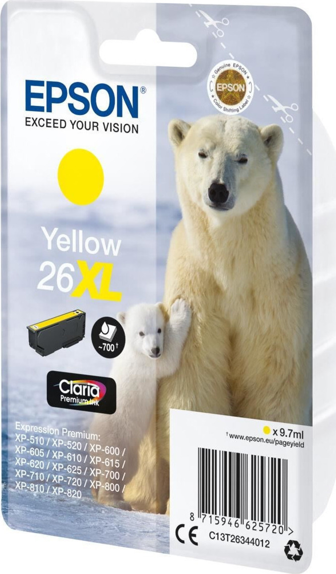Epson 26XL Γνήσιο Μελάνι Εκτυπωτή InkJet Κίτρινο (C13T26344010 C13T26344012)