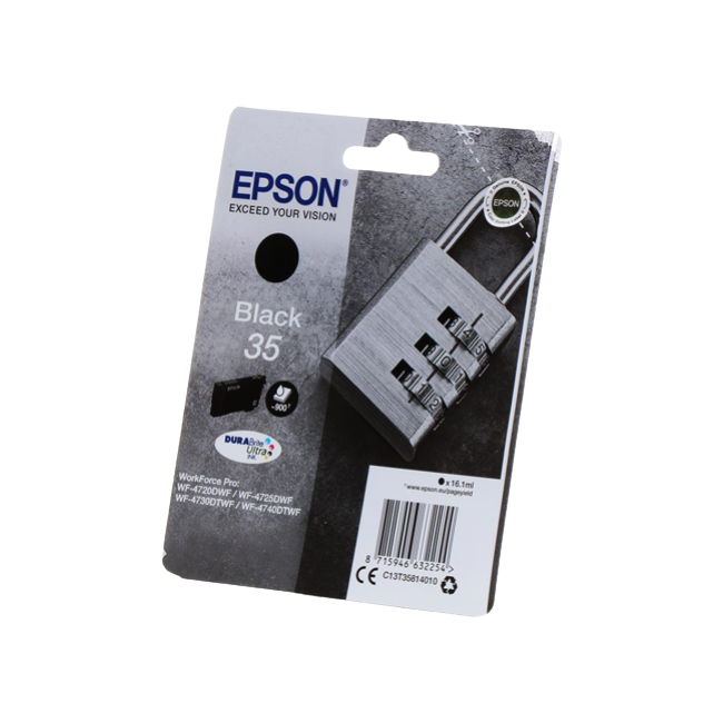 Αυθεντικό Μελάνι Epson 35XL με χωρητικότητα 41,2ml. Εκτυπώστε κείμενα και παρουσιάσεις με την ποιότητα που προσφέρει η Epson.