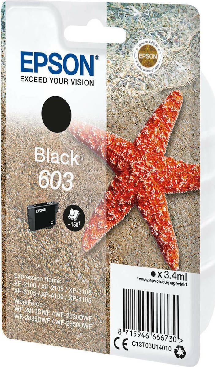 Epson 603 Γνήσιο Μελάνι Εκτυπωτή InkJet Μαύρο (C13T03U14010)