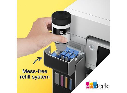 Η επιλογή των λειτουργιών είναι εύκολη με την έγχρωμη οθόνη αφής LCD. Και ο ανεφοδιασμός των μεγάλων μπροστινών δοχείων μελάνης είναι απλός με τα επανασφραγιζόμενα, διαισθητικά και χωρίς σταγόνες δοχεία μελάνης.