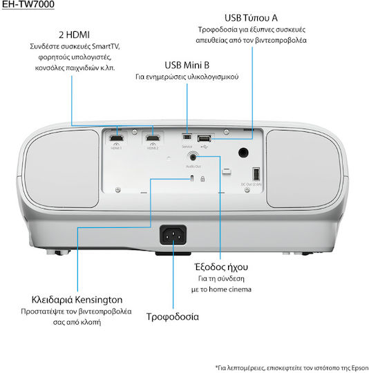 Epson EH-TW7000 V11H961040 3D Projector 3LCD 4K Ultra HD Απλής Λάμπας