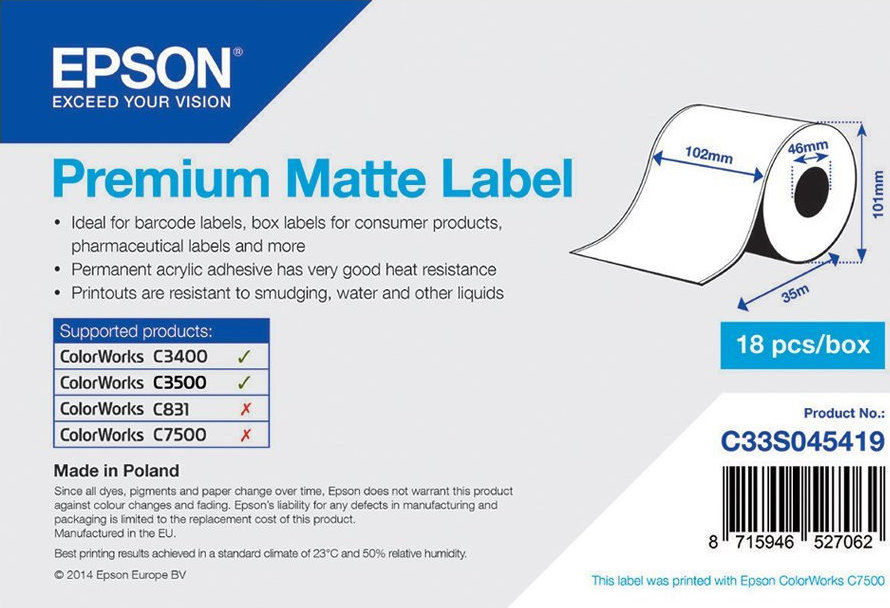Epson Premium Matte Ταινία Ετικετογράφου 35m x 102mm σε Λευκό Χρώμα