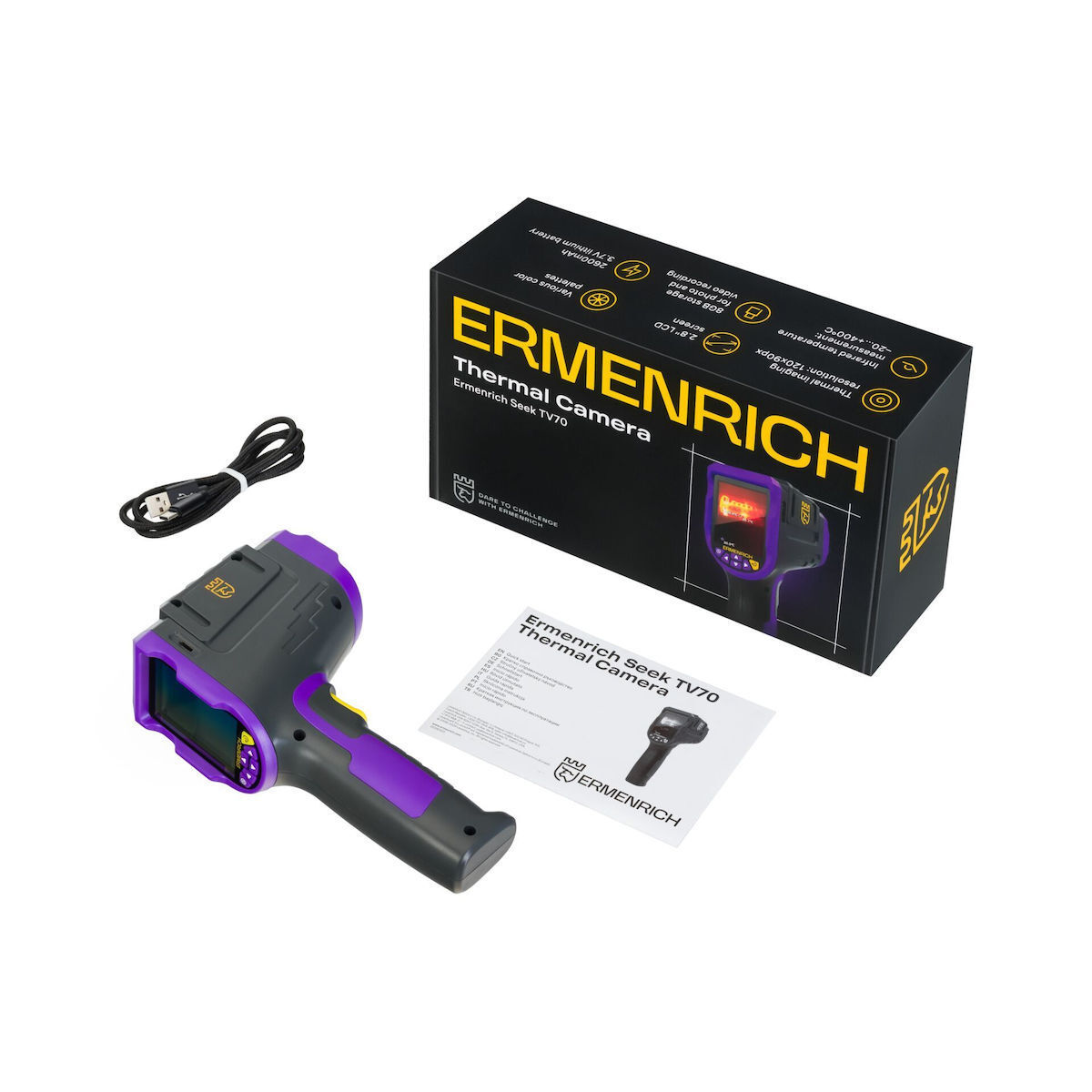 Η θερμική συσκευή καταγραφής Ermenrich Seek TV70 είναι χρήσιμη για την επιθεώρηση ηλεκτρικού εξοπλισμού, την ανίχνευση θερμικών διαρροών σε προσόψεις και θεμελιώσεις κτιρίων ή την παρακολούθηση εγκατάστασης συστημάτων θέρμανσης.