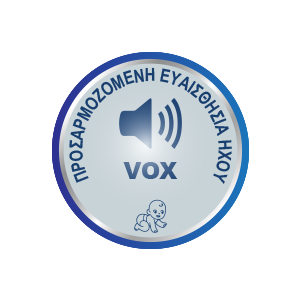 Το σύστημα VOX είναι μια τεχνολογία που εξασφαλίζει τη μέγιστη εξοικονόμηση ενέργειας και επομένως τη μακροπρόθεσμη λειτουργία της συσκευής χωρίς φόρτιση. Το σύστημα ενδοεπικοινωνίας λειτουργεί σε κατάσταση αναμονής και όταν εντοπιστεί κίνηση ή φωνή, ξεκινά και μεταδίδει την εικόνα και τον ήχο στην οθόνη του γονέα.