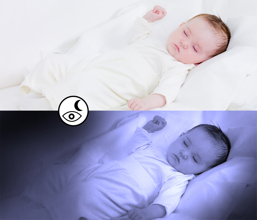 Η συσκευή είναι εξοπλισμένη με αυτόματη λειτουργία νυχτερινής όρασης, λειτουργία αμφίδρομης ομιλίας, παρακολούθηση θερμοκρασίας δωματίου και 8 ενσωματωμένα νανουρίσματα.