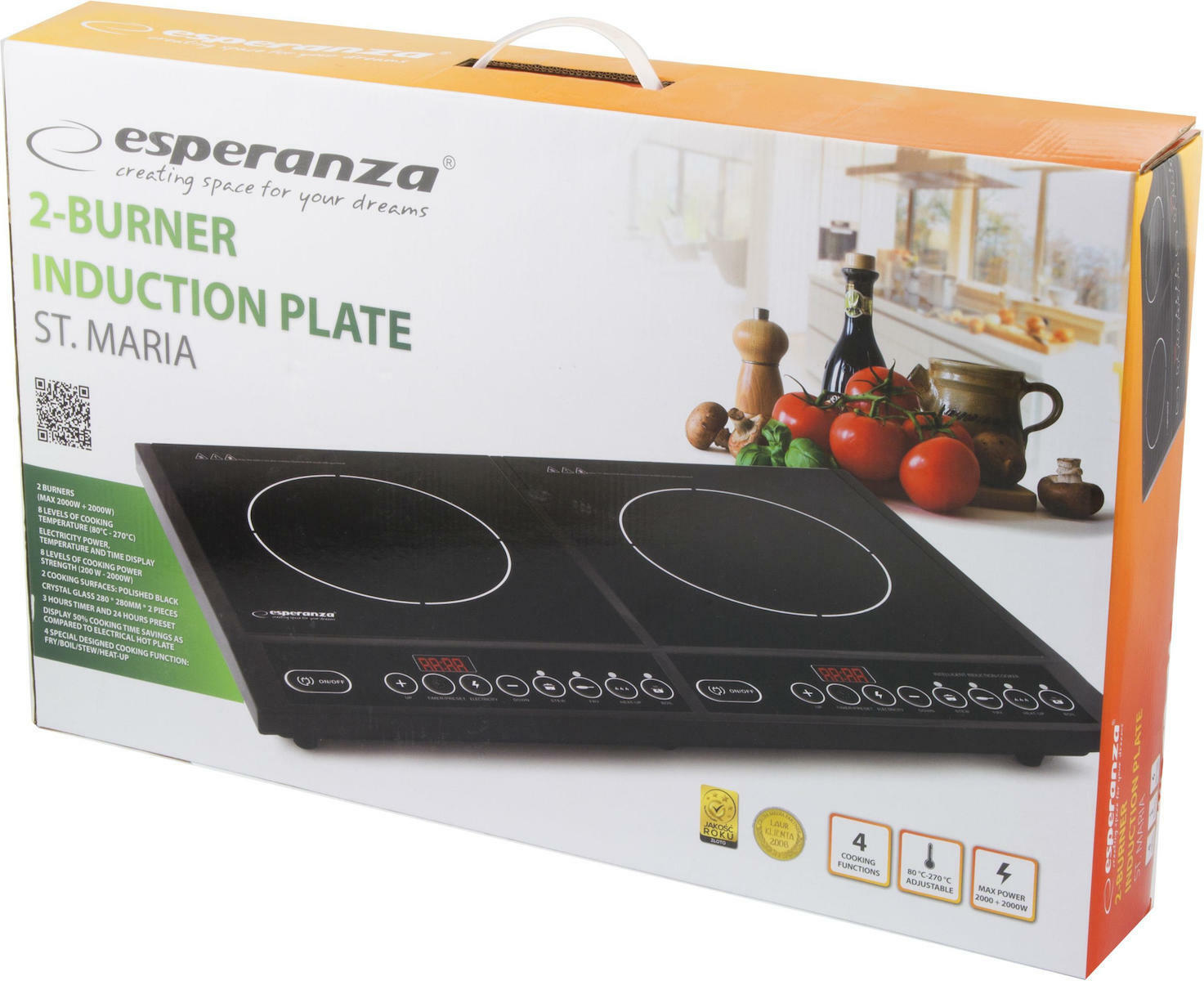 Esperanza Επιτραπέζια Εστία Επαγωγική Διπλή Μαύρη