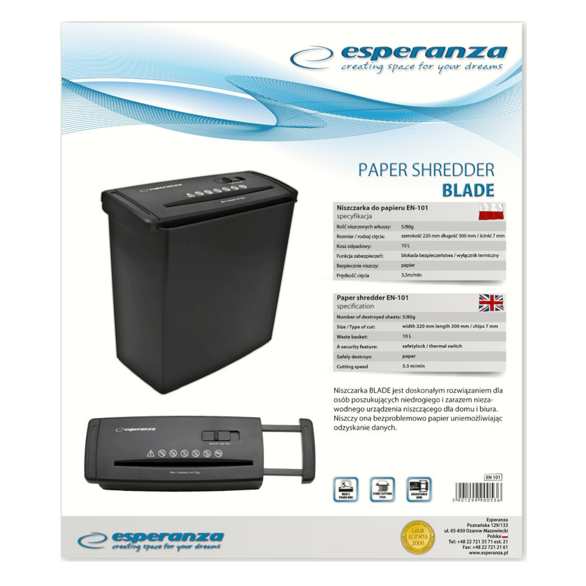 Esperanza Καταστροφέας Εγγράφων Strip Cut 5 Φύλλων με Κάδο 10lt