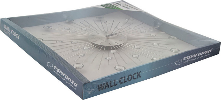 Το ρολόι τοίχου Esperanza Boston δεν χρησιμοποιείται μόνο για να δείξει χρόνο, αλλά και για τη διακόσμηση οποιουδήποτε εσωτερικού. Υπάρχουν κρύσταλλα διαφόρων σχημάτων στις αποκλίνουσες ακτίνες.