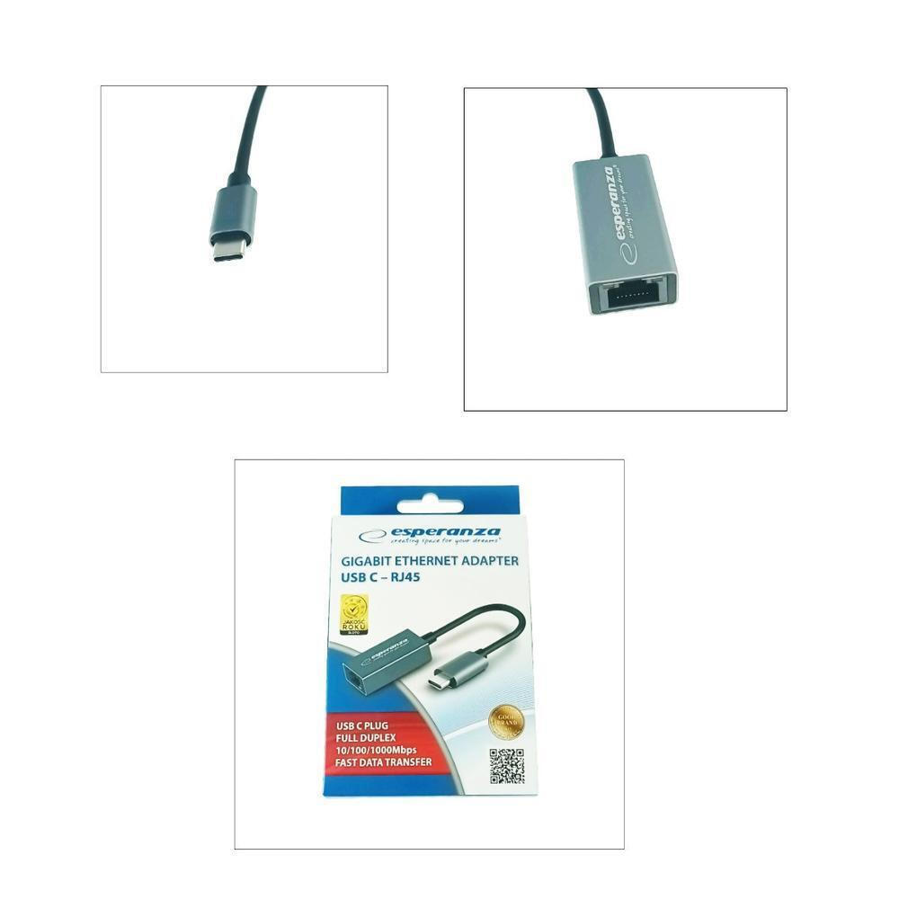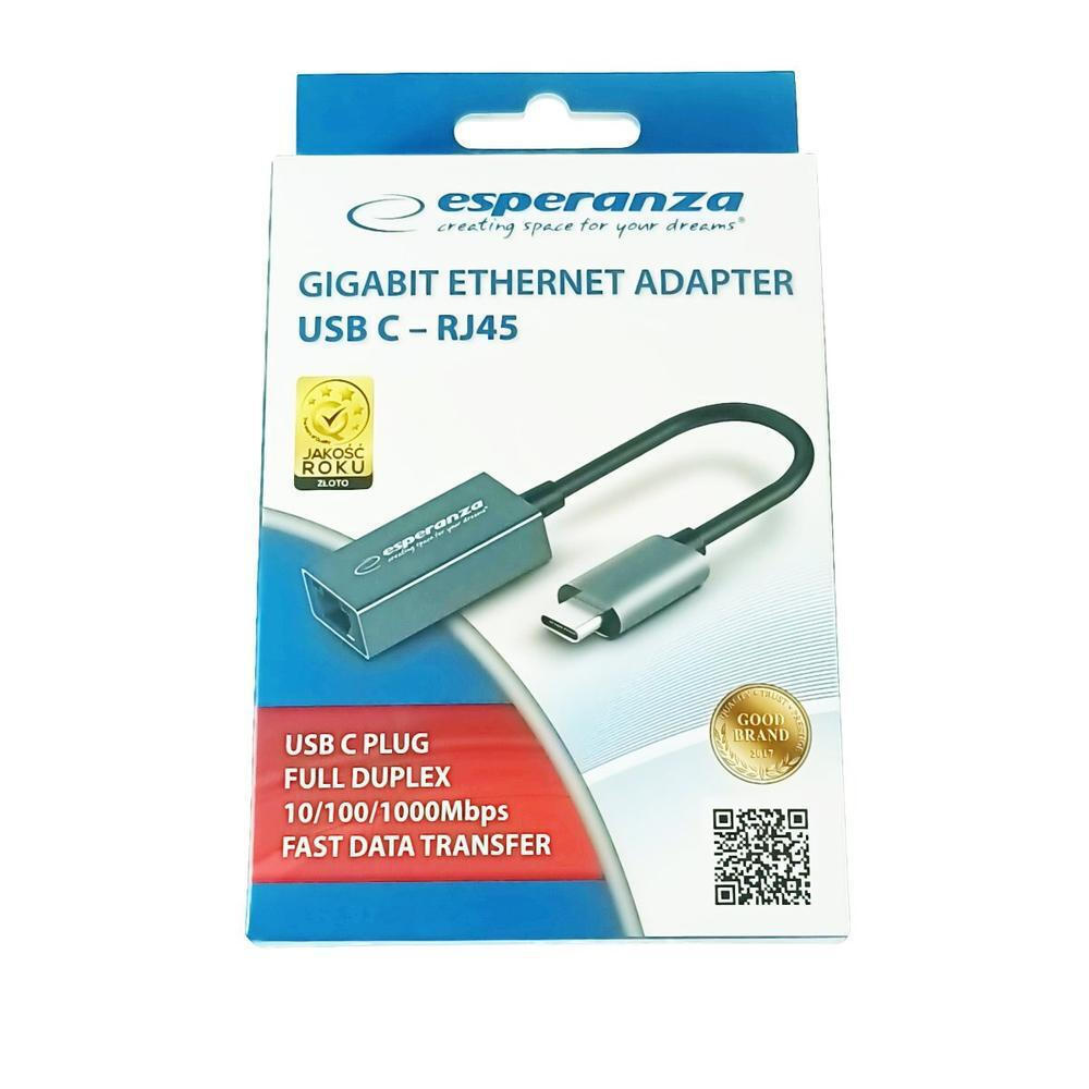 Esperanza ENA102 USB-C Αντάπτορας Δικτύου για Ενσύρματη σύνδεση Gigabit Ethernet