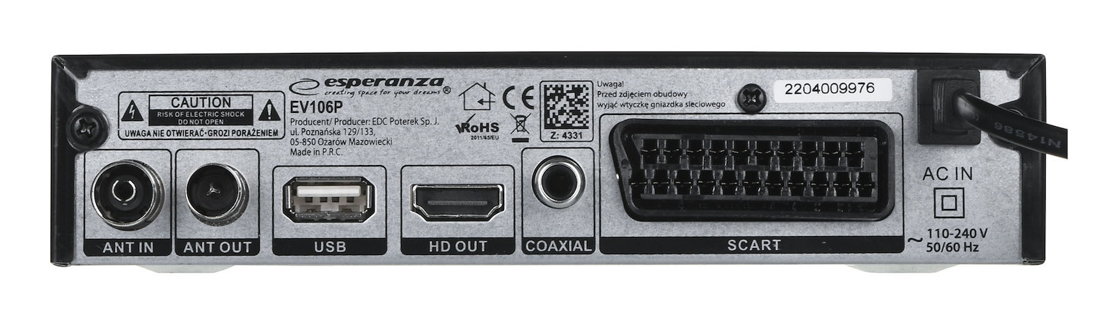 Esperanza EV106P EV105 Ψηφιακός Δέκτης Mpeg-4 Full HD (1080p) Σύνδεσεις SCART / HDMI / USB