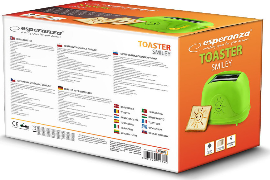 Esperanza Image Smiley Φρυγανιέρα 2 Θέσεων 750W Πράσινη
