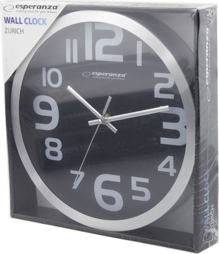 Esperanza Zurich Αθόρυβο Ρολόι Τοίχου Μεταλλικό Μαύρο Ø25cm EHC013K