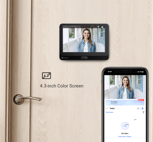 Προβάλετε απρόσκοπτα ζωντανό βίντεο τόσο από την εφαρμογή EZVIZ όσο και από την βολική έγχρωμη οθόνη 4,3 ιντσών. Η οθόνη παρέχει ζωντανή ευκρίνεια 1080p, καθιστώντας εύκολο για τους ηλικιωμένους και τα παιδιά να γνωρίζουν τι συμβαίνει έξω.