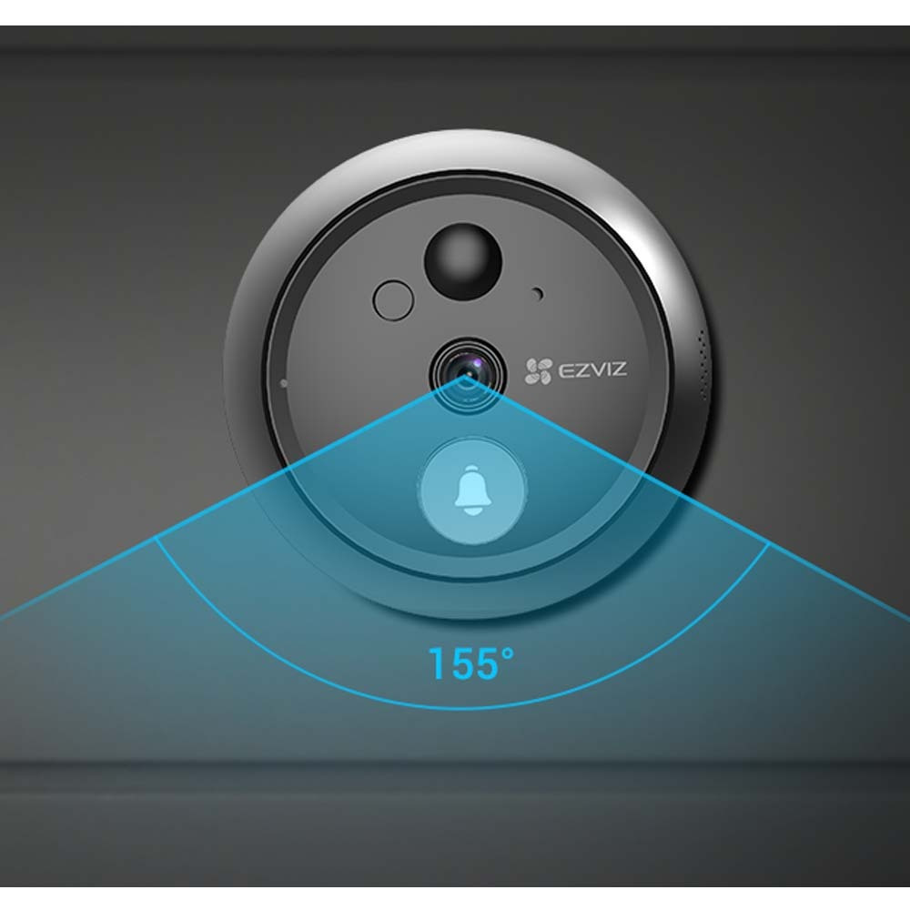 - Υπερευρυγώνιος φακός 155°: Εξασφαλίζει ευρύ πεδίο θέασης, καλύπτοντας μεγαλύτερη περιοχή μπροστά από την πόρτα σας.Ζωντανή προβολή και αμφίδρομη βιντεοκλήση: Σας επιτρέπει να βλέπετε και να επικοινωνείτε με τους επισκέπτες σας σε πραγματικό χρόνο μέσω της εφαρμογής EZVIZ.