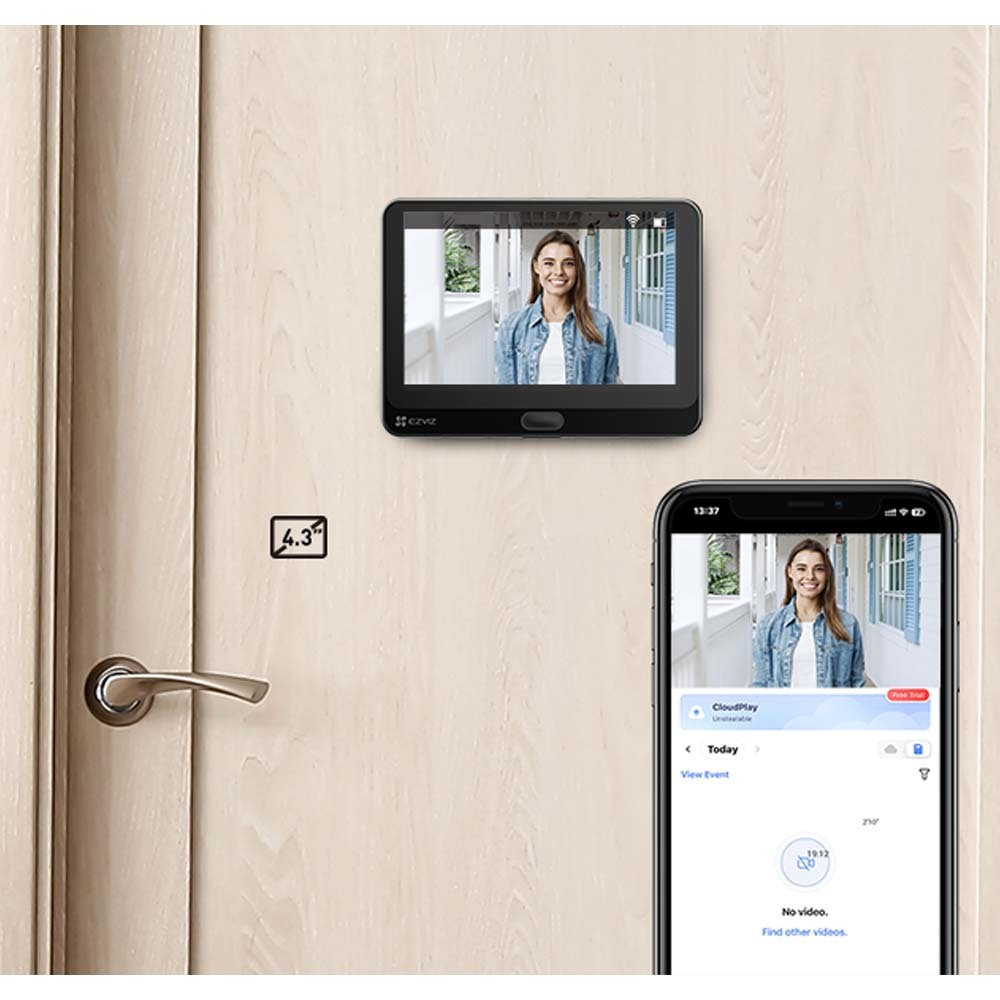 Προβάλετε απρόσκοπτα ζωντανό βίντεο τόσο από την εφαρμογή EZVIZ όσο και από την βολική έγχρωμη οθόνη 4,3 ιντσών. Η οθόνη παρέχει ζωντανή ευκρίνεια 1080p, καθιστώντας εύκολο για τους ηλικιωμένους και τα παιδιά να γνωρίζουν τι συμβαίνει έξω.