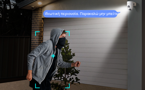 Όταν εντοπίσει εισβολείς, η κάμερα θα ενεργοποιήσει μια δυνατή σειρήνα και θα αναβοσβήσει δύο εκθαμβωτικούς προβολείς για να ενημερώσει τους απρόσκλητους αγνώστους ότι έχουν εντοπιστεί.