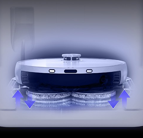 Με τον αισθητήρα δαπέδου στη συσκευή η RS2 ανιχνεύει τα χαλιά κι όταν είναι έτοιμα τα βρεγμένα μαξιλαράκια σφουγγαρίστρας απομακρύνεται έξυπνα από την περιοχή του χαλιού, για να επικεντρωθεί στο σφουγγάρισμα σκληρών δαπέδων.