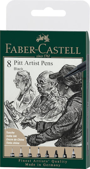 Faber-Castell Pitt Artist Pen India Μαρκαδόροι Σχεδίου Μαύροι 0.3mm Σετ 8τμχ 167158