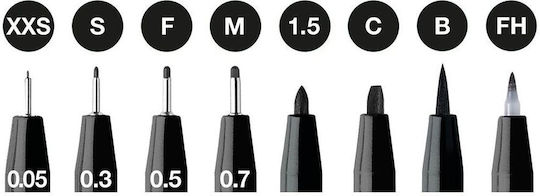 • Μύτες: XS = 0.1 mm, S = 0.3 mm, F = 0.5 mm, M = 0.7 mm, B = μύτη βούρτσας, 1.5 = στρογγυλή μύτη 1.5 mm, SB = μαλακή μύτη βούρτσας, SC = μαλακή μύτη χελιδονούρας