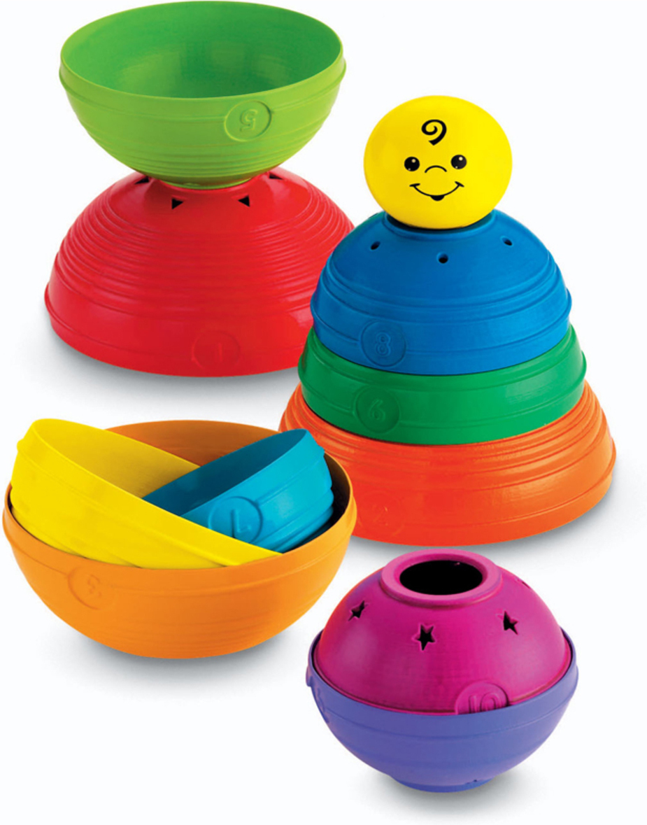 Το ένα πάνω στο άλλο, το άλλο μέσα στο άλλο, καπάκι με το άλλο κι άλλο κι άλλο! Κυπελλάκια που στοιβάζονται ανά μέγεθος ή που ενώνονται και γίνονται μπαλίτσες. Μαζί και μία μπαλίτσα κουδουνίστρα. Οι συνδυασμοί δε σταματάνε ποτέ!